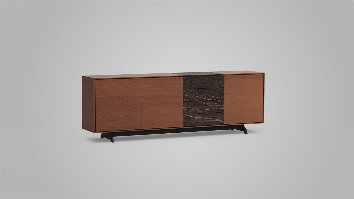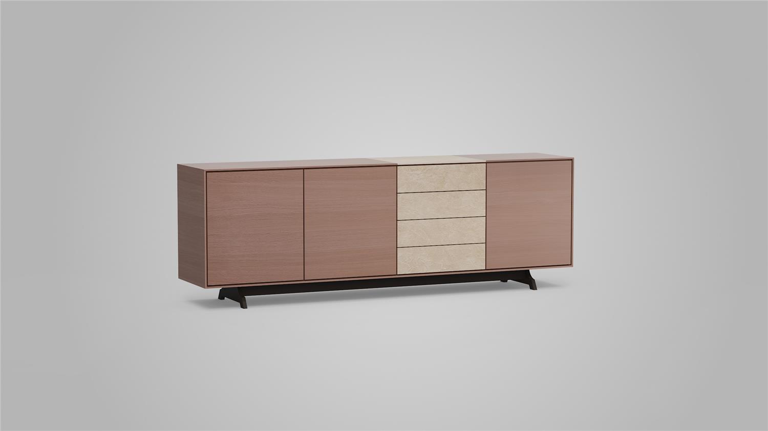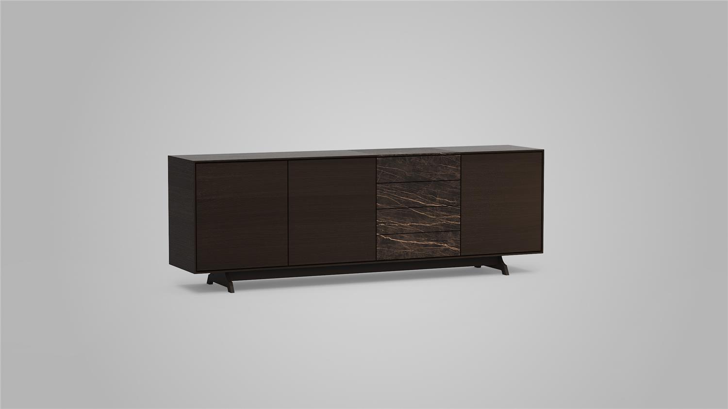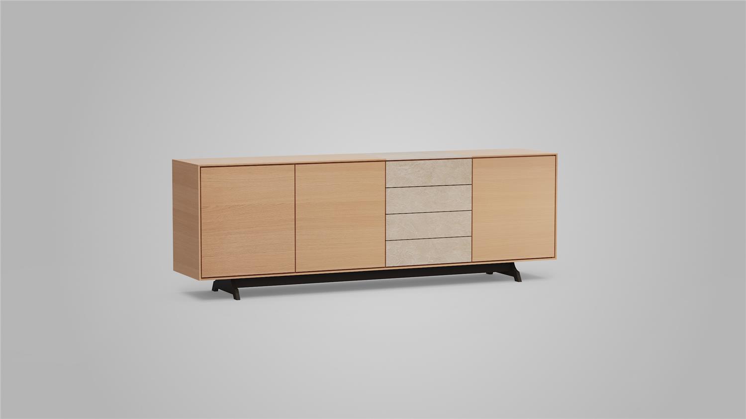 De collectie omvat hoge en lage dressoirs, berg- en vitrinekasten en tv-meubels – allemaal ontworpen met oog voor detail en functionaliteit. Dankzij de keuze uit vier verfijnde beitskleuren, van licht tot donker, creëer je moeiteloos de sfeer die bij jouw woonruimte past.