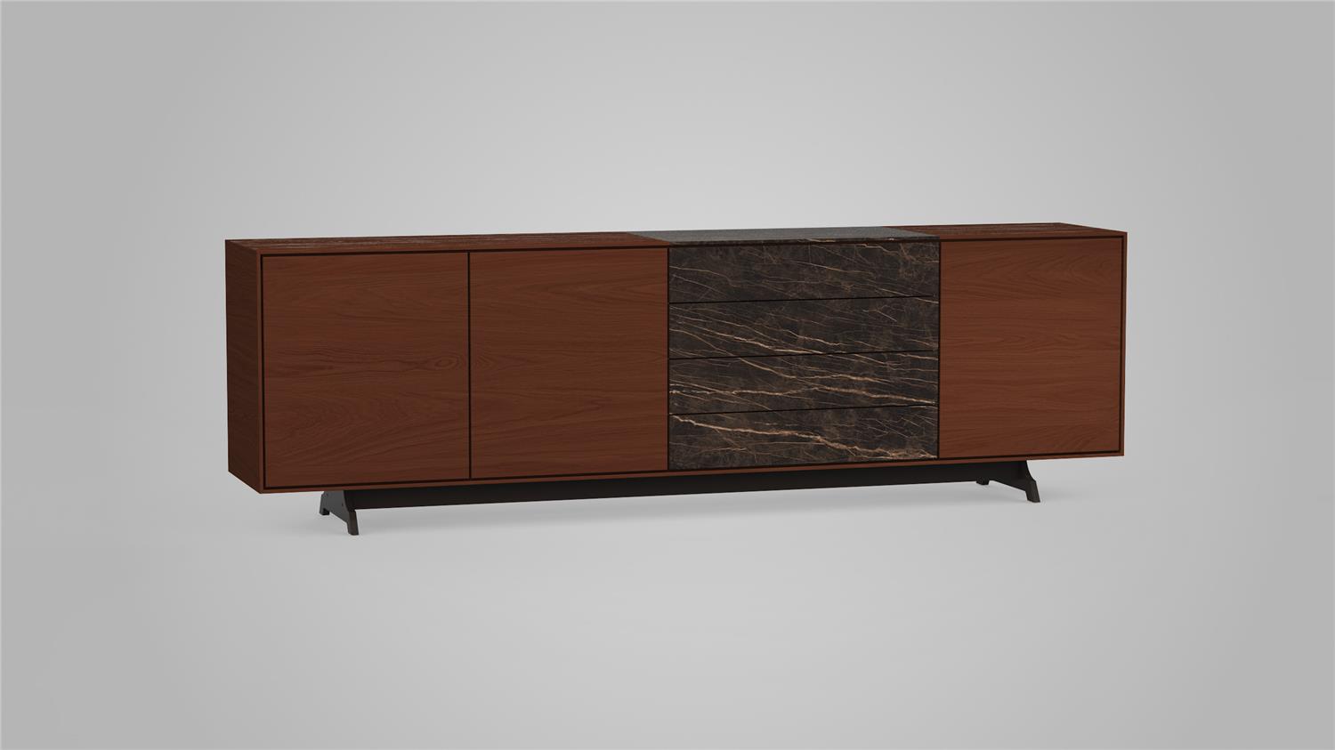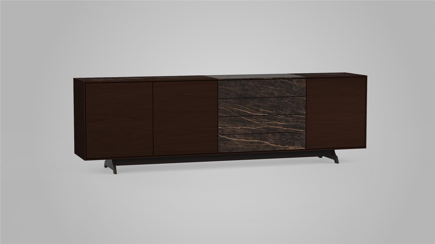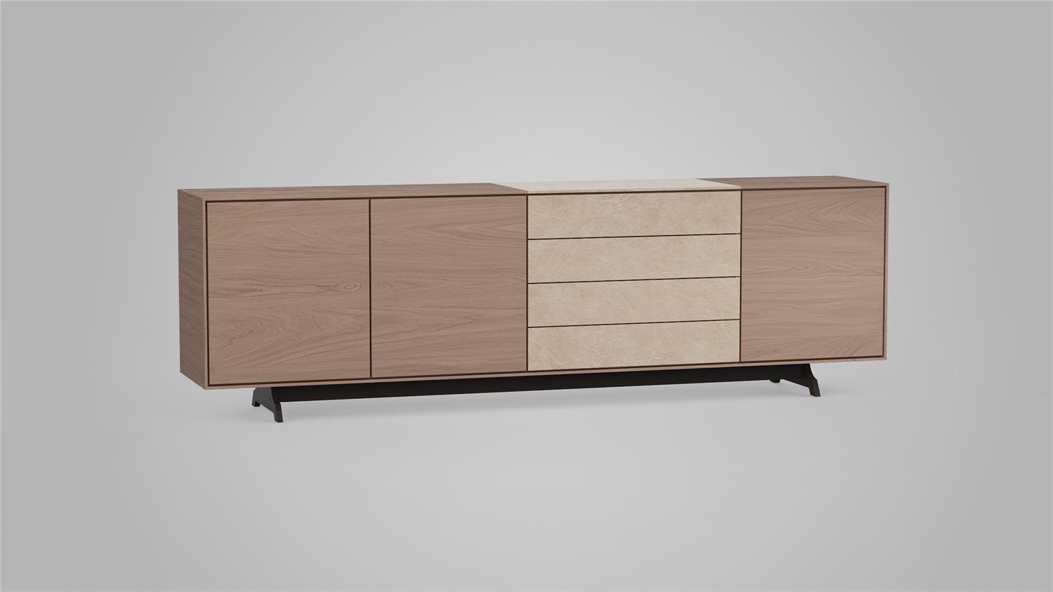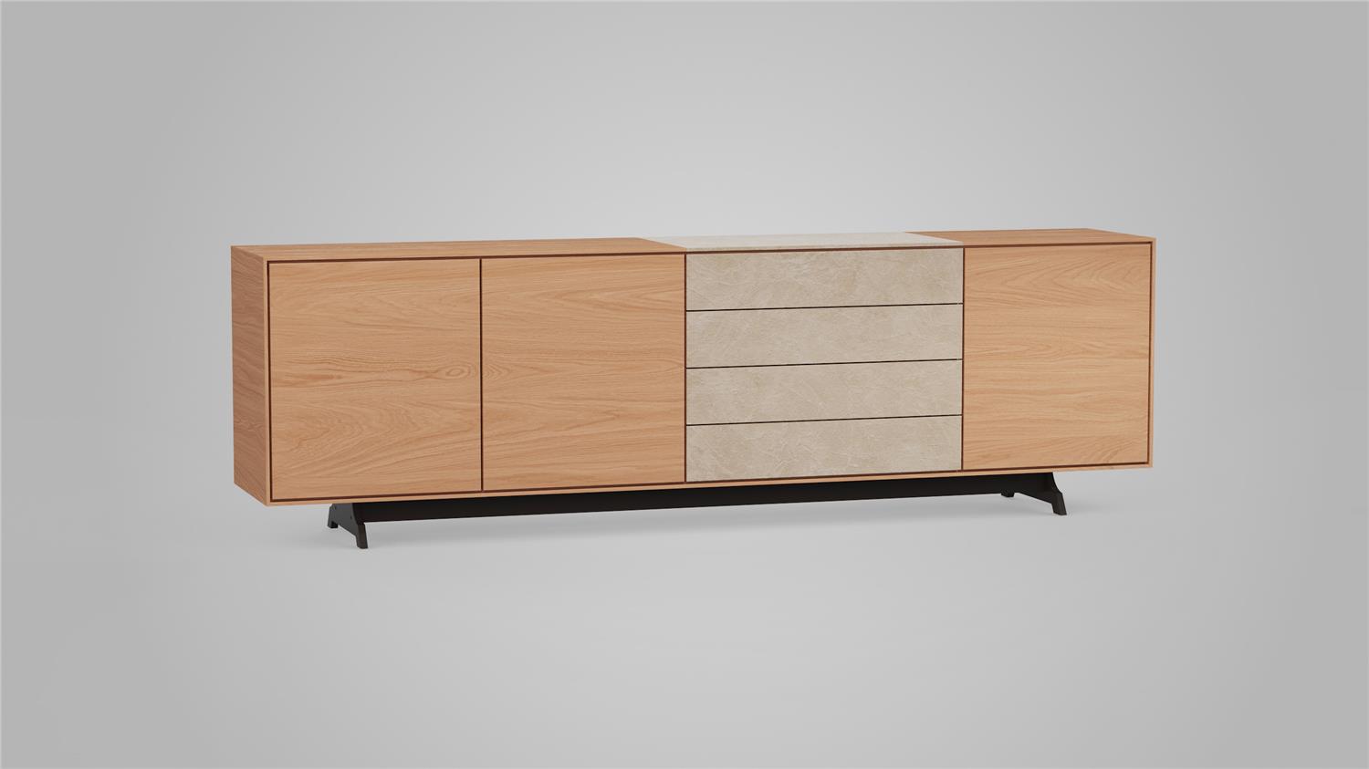 De collectie omvat hoge en lage dressoirs, berg- en vitrinekasten en tv-meubels – allemaal ontworpen met oog voor detail en functionaliteit. Dankzij de keuze uit vier verfijnde beitskleuren, van licht tot donker, creëer je moeiteloos de sfeer die bij jouw woonruimte past.