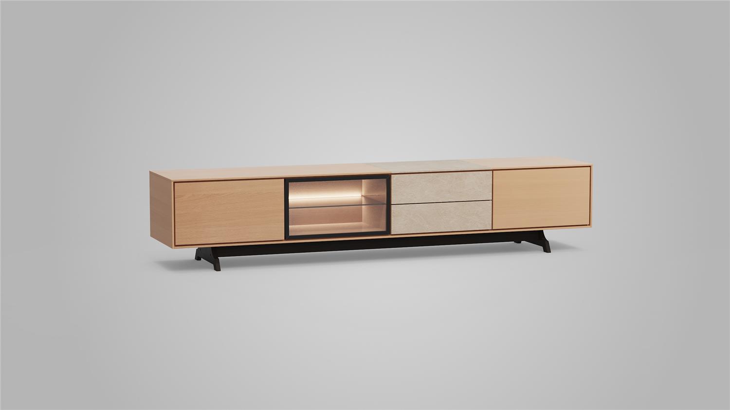 TV-kast 4-deurs met glas - Theuns Eiken meubels