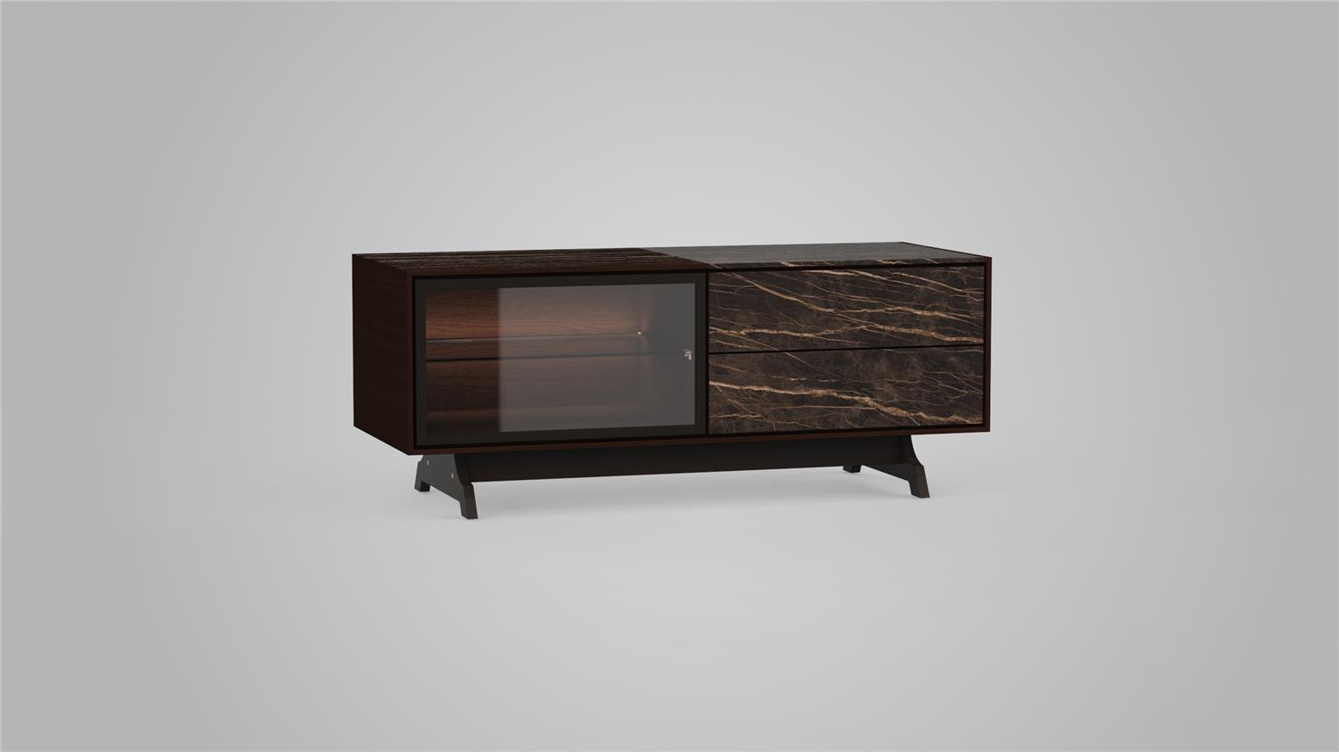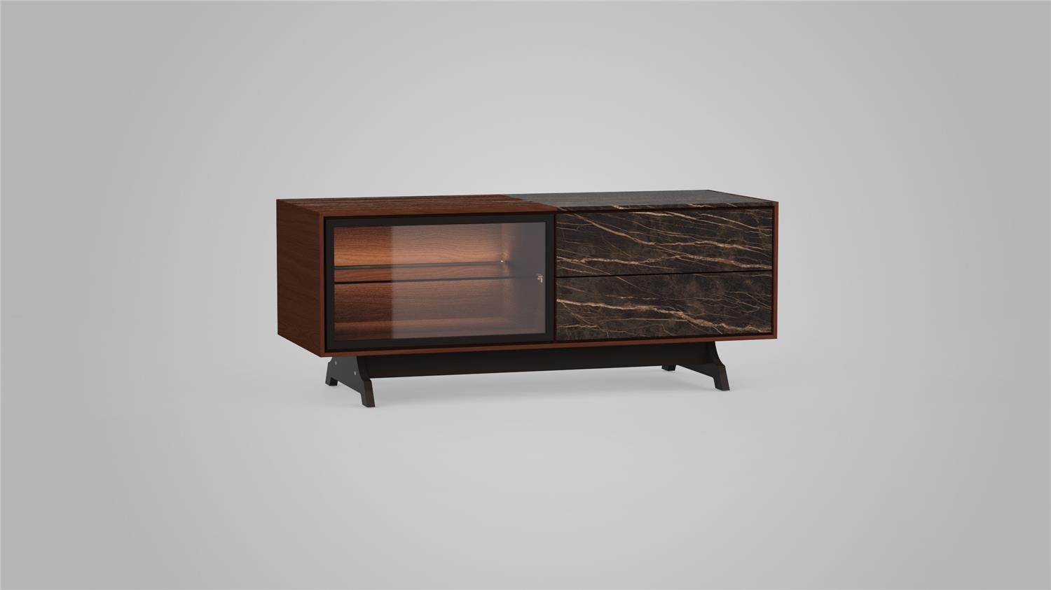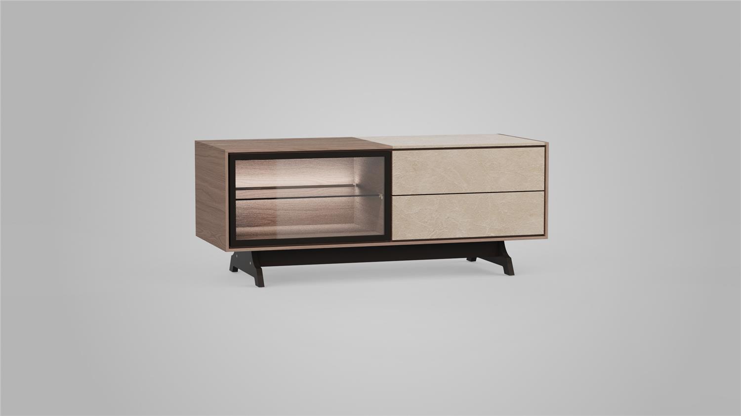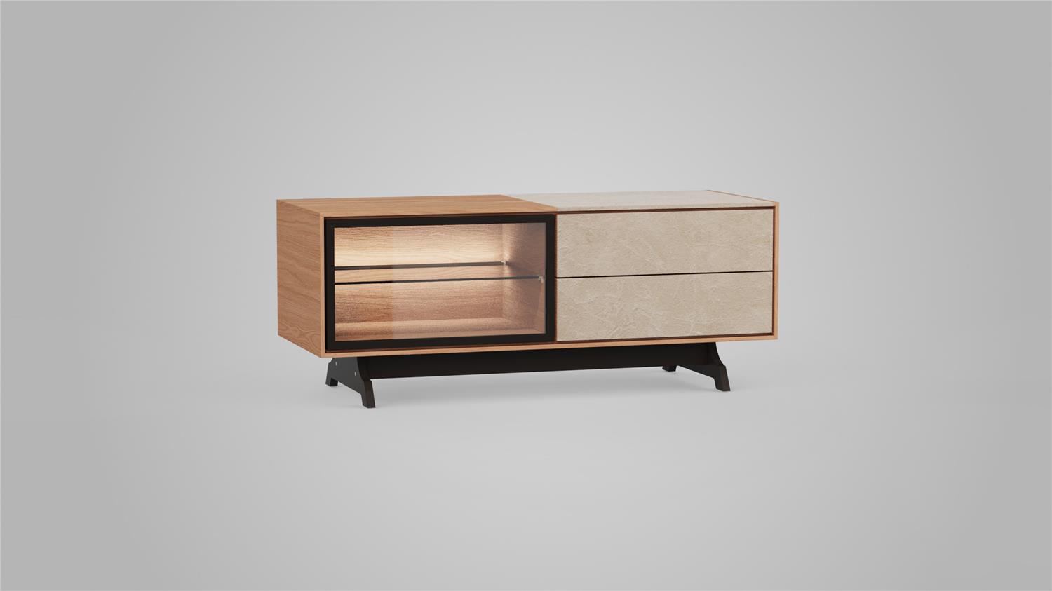 De collectie omvat hoge en lage dressoirs, berg- en vitrinekasten en tv-meubels – allemaal ontworpen met oog voor detail en functionaliteit. Dankzij de keuze uit vier verfijnde beitskleuren, van licht tot donker, creëer je moeiteloos de sfeer die bij jouw woonruimte past.