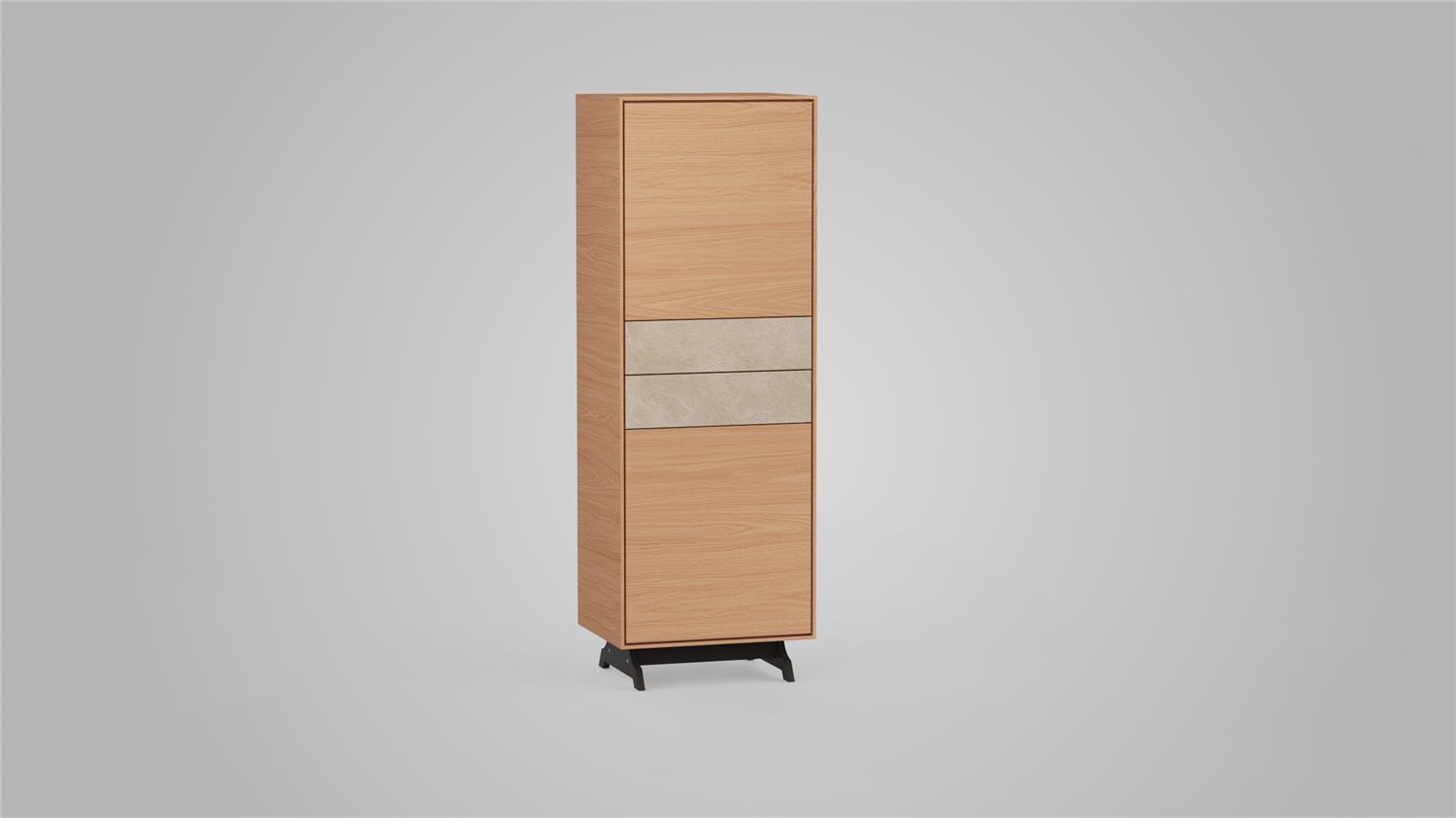 De collectie omvat hoge en lage dressoirs, berg- en vitrinekasten en tv-meubels – allemaal ontworpen met oog voor detail en functionaliteit. Dankzij de keuze uit vier verfijnde beitskleuren, van licht tot donker, creëer je moeiteloos de sfeer die bij jouw woonruimte past.