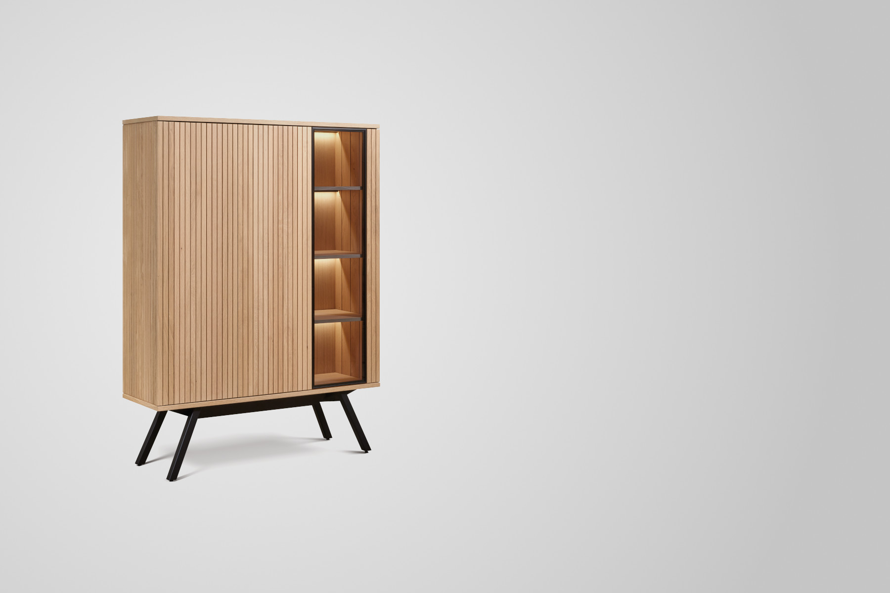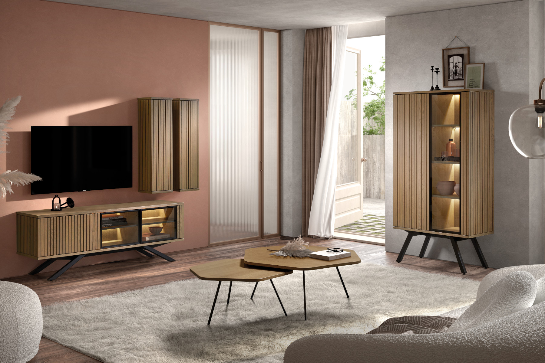 De Napoli-collectie brengt moderne verfijning en tijdloos vakmanschap in jouw interieur met dressoirs, opbergkasten, vitrinekasten, een bureau en tv-meubels, allemaal gekenmerkt door een lattenstructuur van massief eikenhout. Dit elegante ontwerp benadrukt de natuurlijke schoonheid van het hout en voegt warmte, textuur en een verfijnde uitstraling toe aan elke ruimte. Door functionaliteit te combineren met een opvallende visuele aantrekkingskracht, is de Napoli-collectie perfect voor liefhebbers van kwaliteit, stijl en verfijnd meubeldesign.