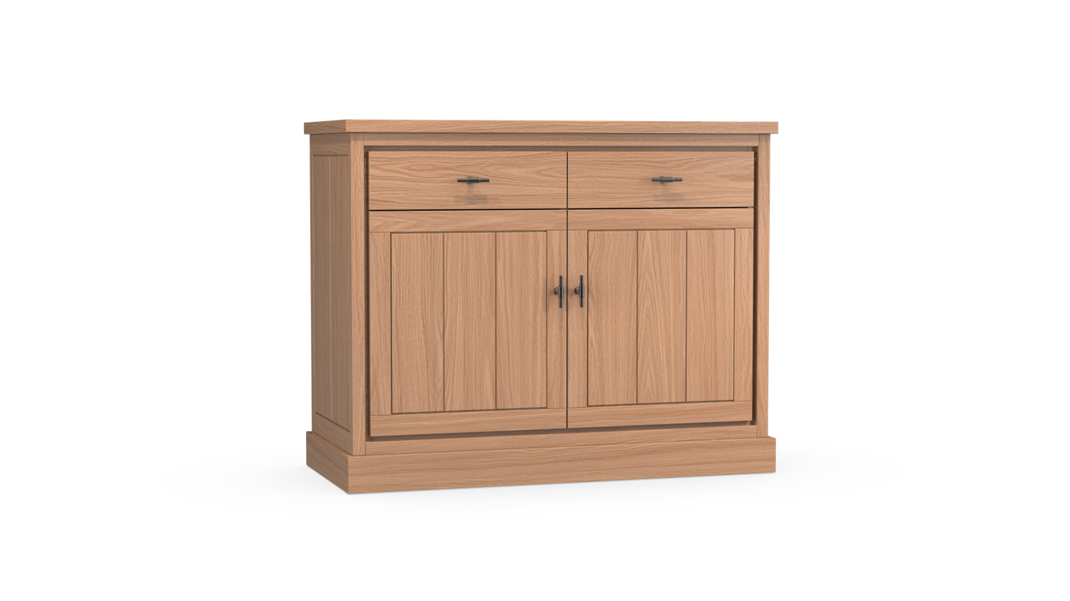 Breng een gevoel van gezelligheid en stijl in je eetkamer met het Jura dressoir 2-deurs. De combinatie van massief eik en eiken fineer geeft een robuuste, natuurlijke uitstraling, terwijl het strakke design een moderne touch toevoegt.
