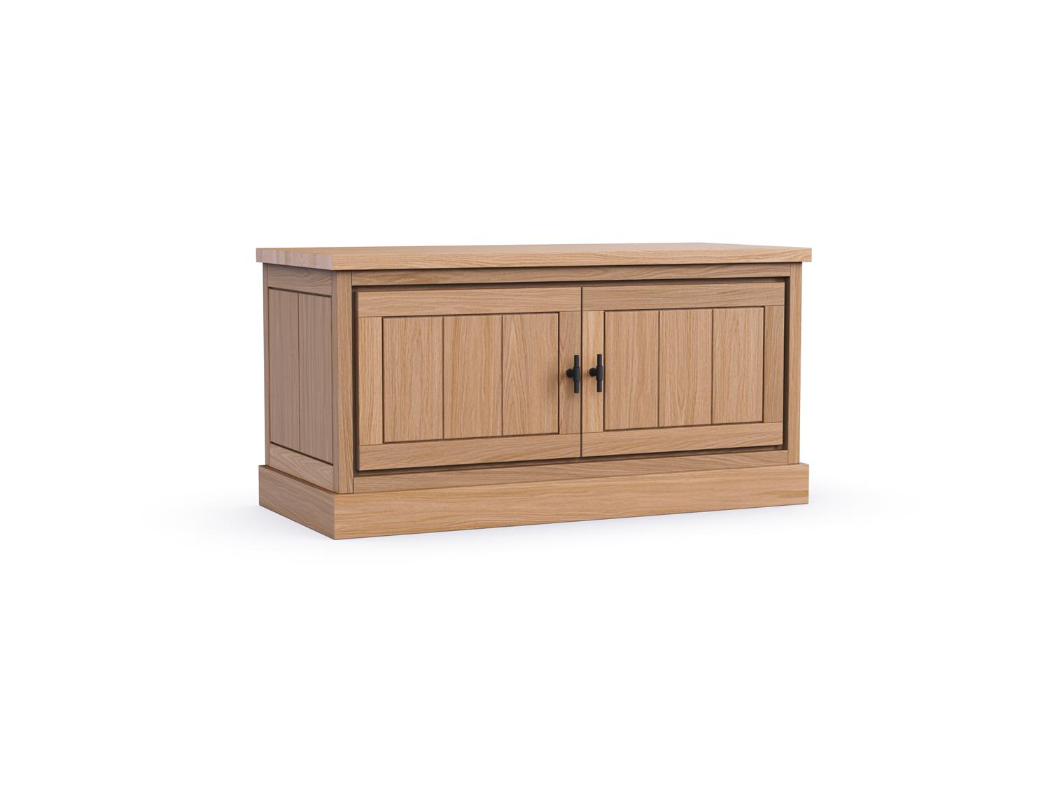Met 2 massieve deuren biedt de tv-kast voldoende opbergruimte voor elektronica, accessoires of multimedia, zodat je woonkamer altijd netjes en overzichtelijk blijft. Tegelijkertijd behoudt het meubel zijn elegante en tijdloze uitstraling.
